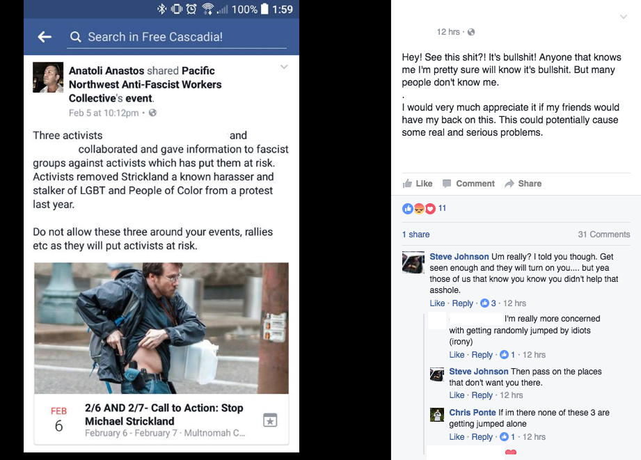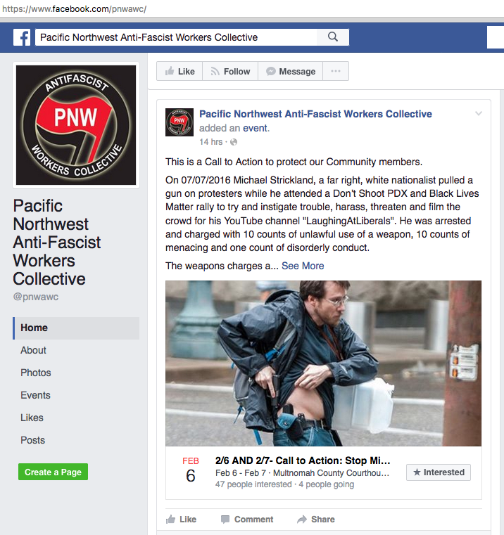 In the lead up to the trial, an antifa-associated terrorist group openly plotted to interfere with the trial, threaten myself, threaten witnesses, and vowed to “stop Michael Strickland” in a Facebook event page. They continued down the false trope of calling me a “white nationalist” (whatever that means), and claiming that I went to events to threaten, harass, and stalk people.